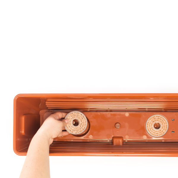 It has drainage cartridges that help your favorite plants to obtain the optimal amount of water. It is designed with an ingenious drainage system that allows excess water to drain from the substrate in the external pot. This planter maintains proper moisture levels for up to four weeks between refills.