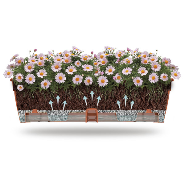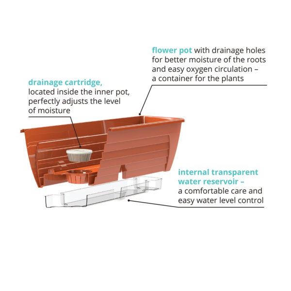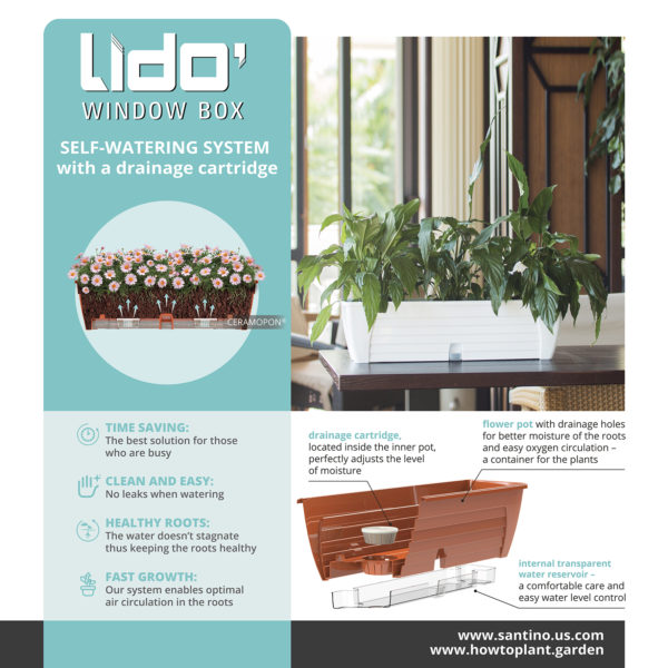 Are you looking for a stylish flowerpot? Great! Self-watering pot Latina Window Box was created for you. This planter is made of special durable plastic with elegant shapes.